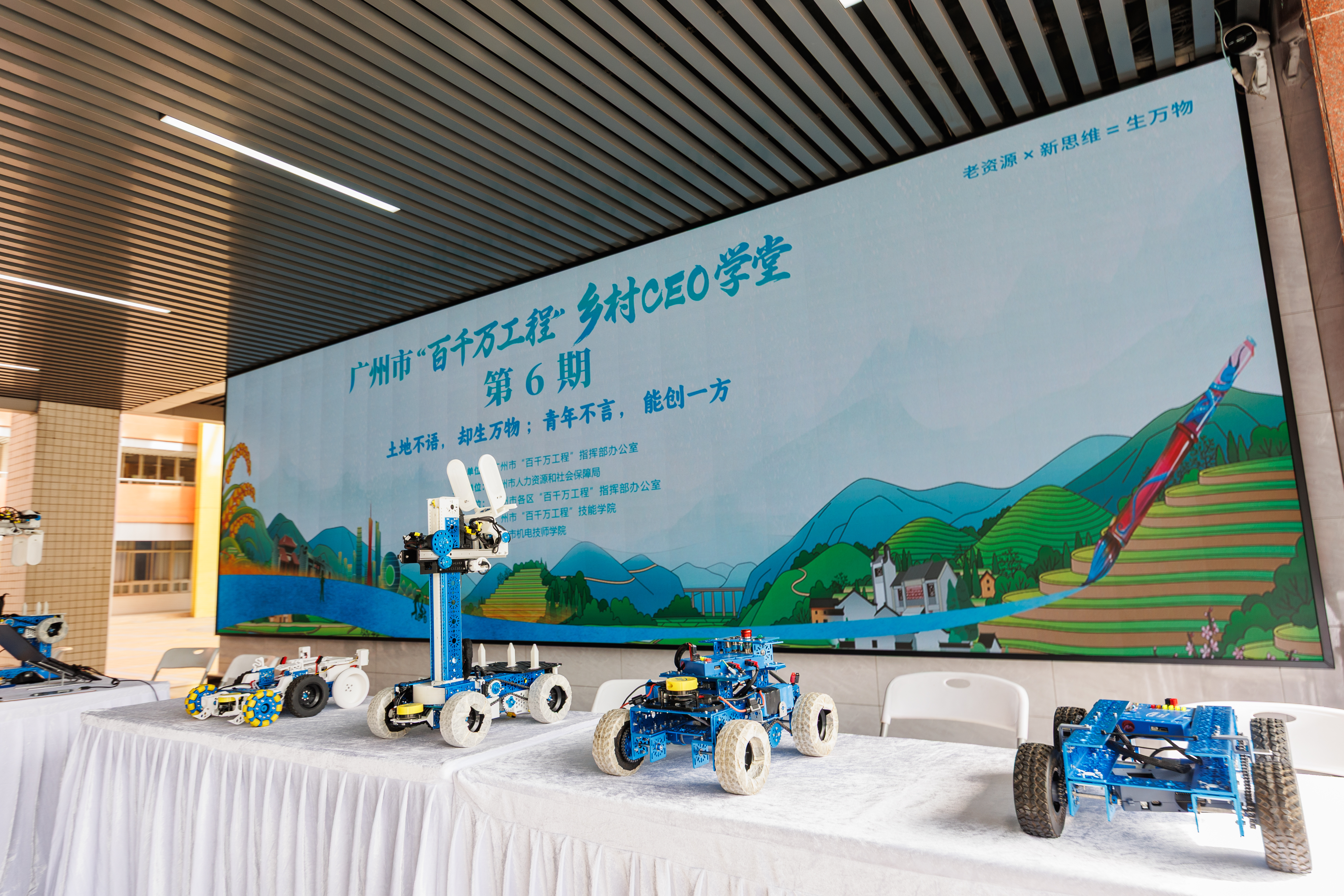 会前,与会领导及嘉宾参观了智慧助农展览。从机器人精准采摘水果到无人机高效作业,科技赋农的场景生动有趣,展现出学院师生以技术技能助力乡村产业现代化发展的蓬勃图景。